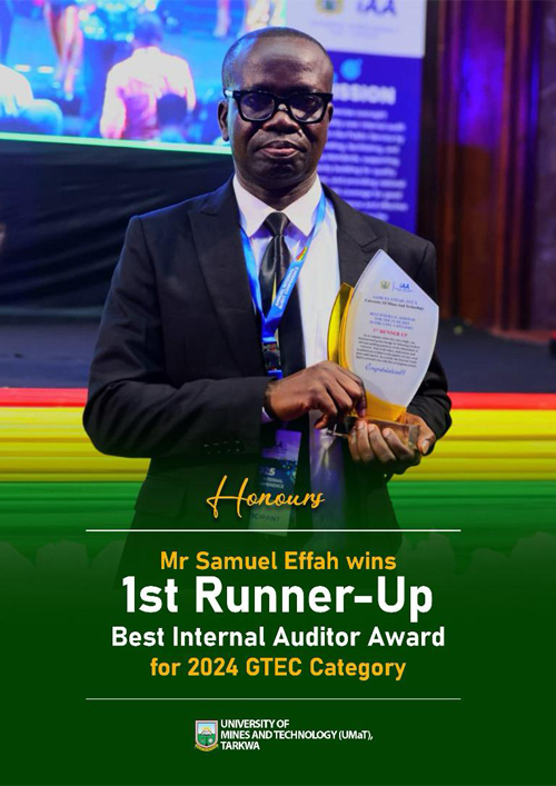 Mr Samuel Effah, FCCA, the Internal Auditor of the University of Mines and Technology has been adjudged the First Runner-Up for