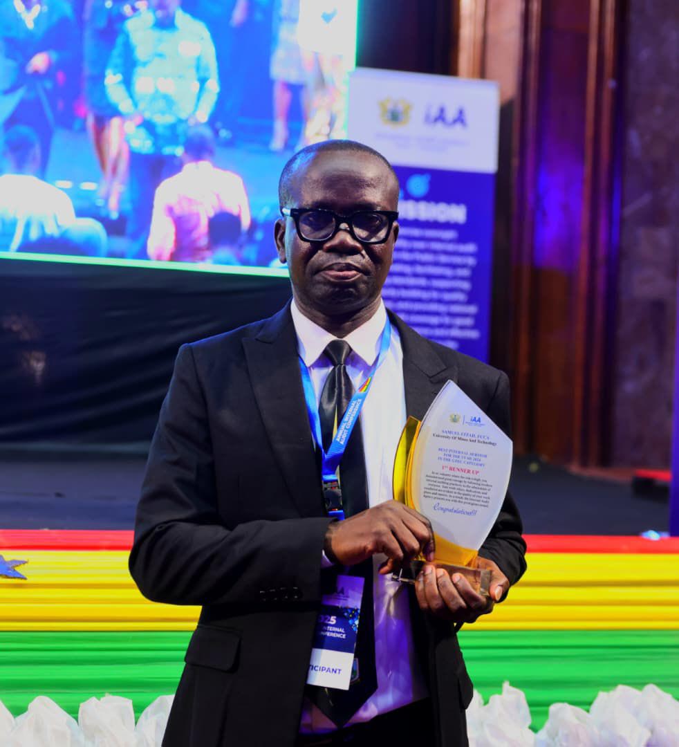 Mr Samuel Effah, FCCA, the Internal Auditor of the University of Mines and Technology has been adjudged the First Runner-Up for the 2024 Best Internal Auditor Award in the Ghana Tertiary Education Commission (GTEC) category. The recognition was conferred by the Internal Audit Agency (IAA) at its 2025 Annual Internal Audit Conference held on 4th November 2025 at the Accra International Conference Centre (AICC).