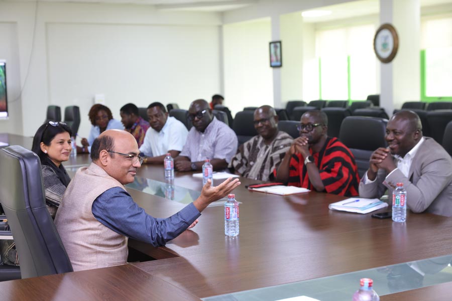 Professor Ofori Sarpong-Akuffo expressed appreciation to the High Commissioner and his delegation for the visit. She shared a brief overview of the University’s history, academic programmes, and research capacity, highlighting the institution’s contributions to engineering, innovation, and allied disciplines. She further drew attention to the Department of Renewable Energy, which had some challenges with solar infrastructure and resources, and appealed for possible support from the Indian High Commission.